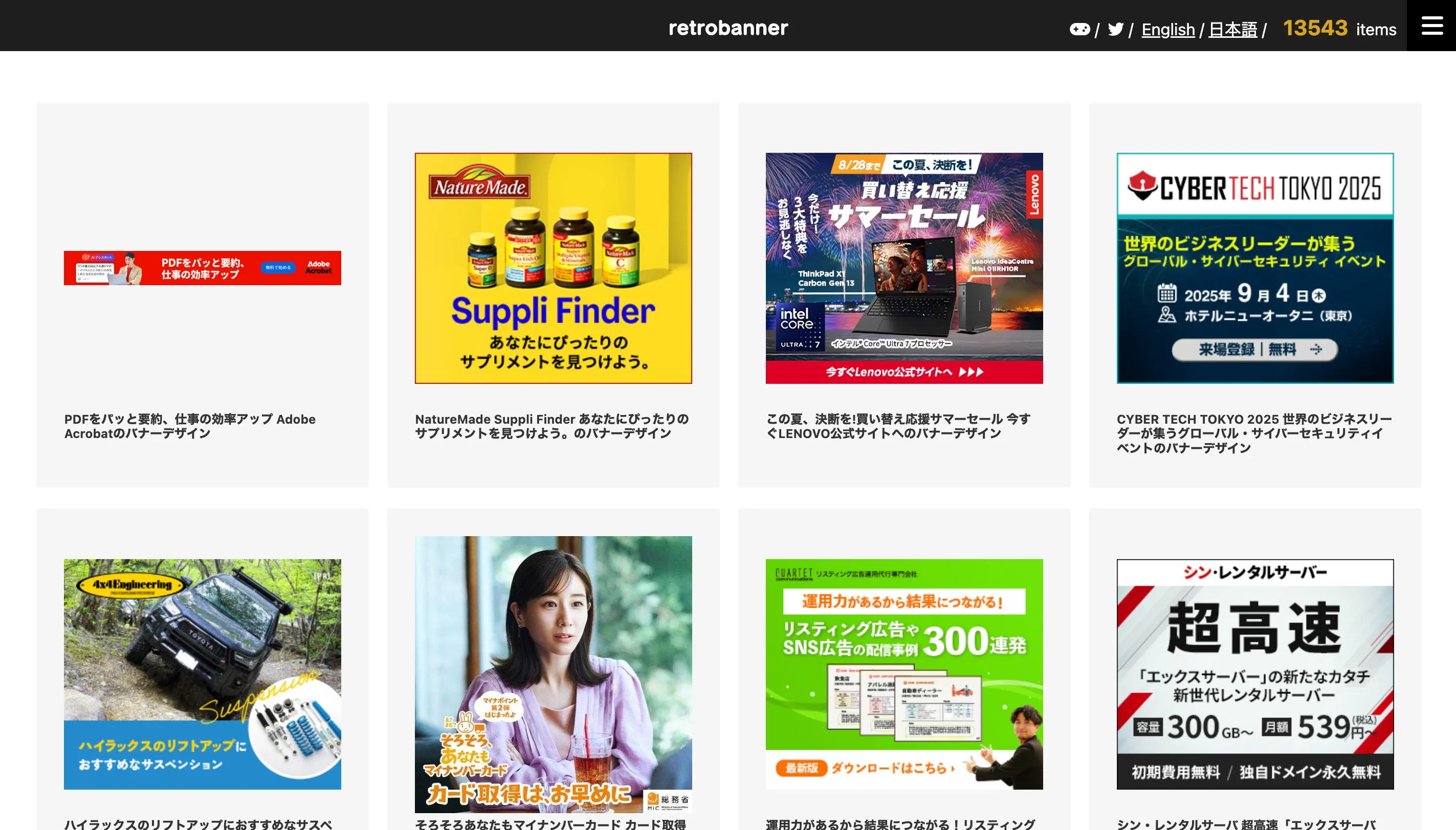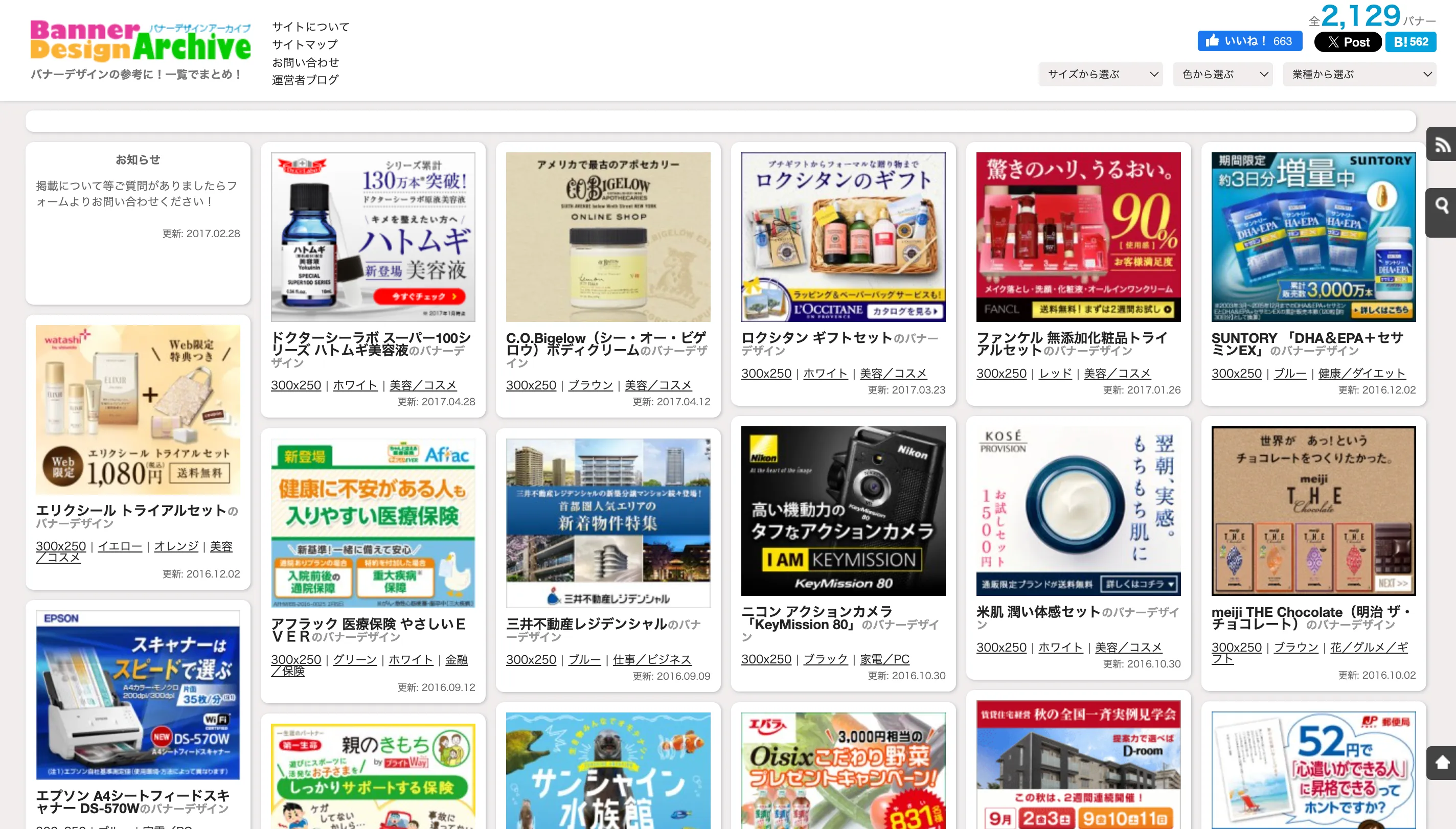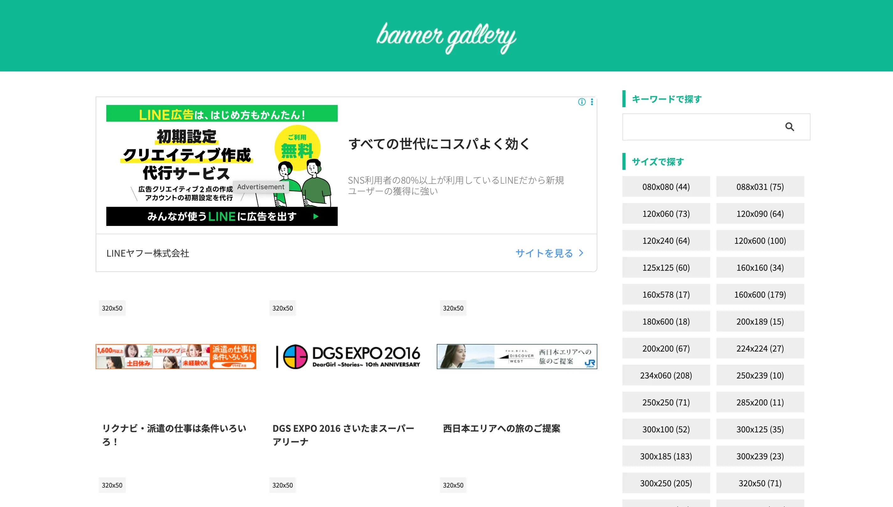 BANNER GALLERY | あらゆるサイズのバナーが揃う。関連作品を表示する機能あり |