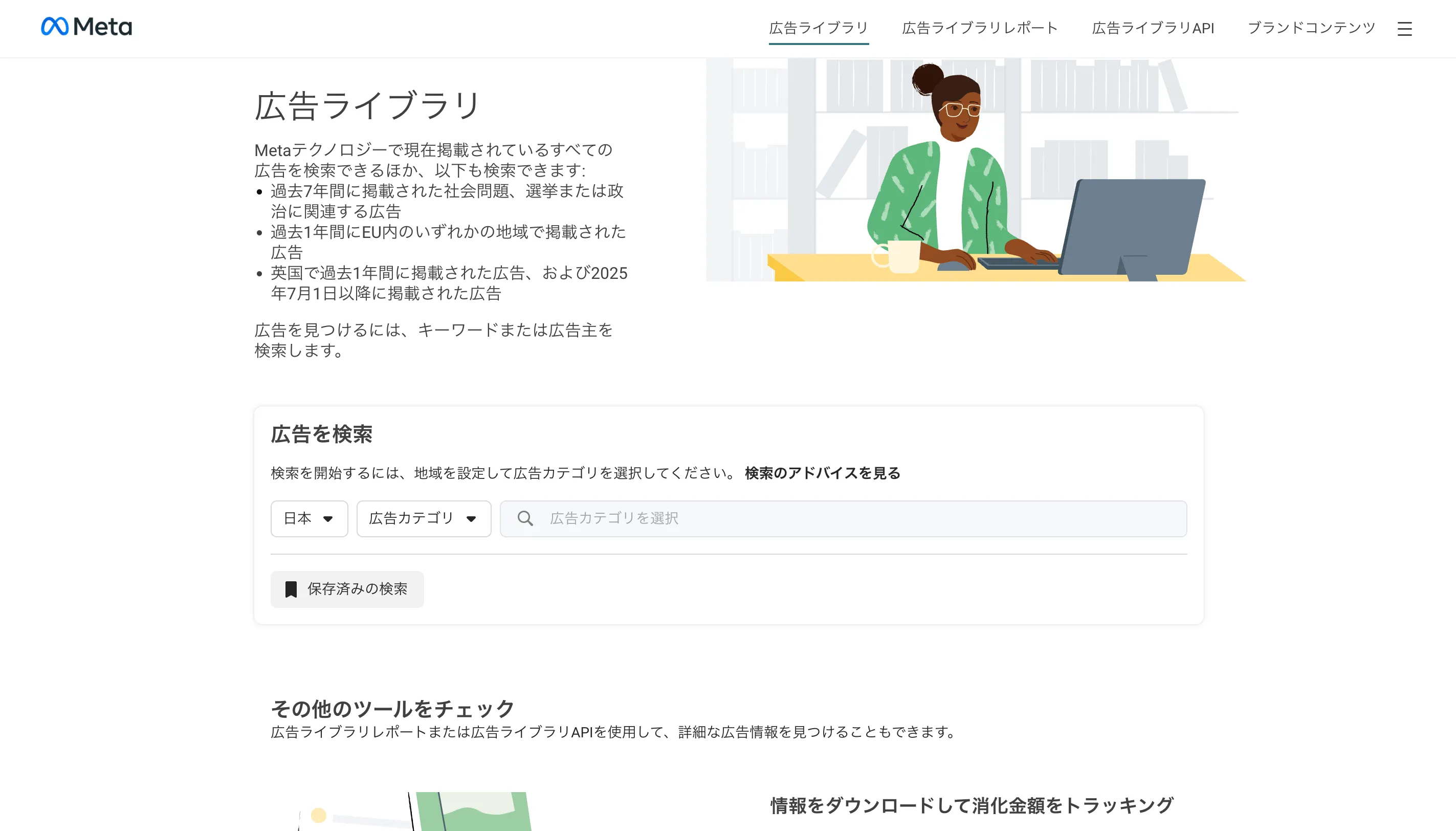 - Facebook広告:Meta広告ライブラリ(Facebook広告ライブラリ)